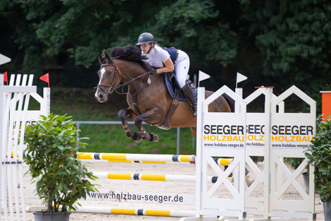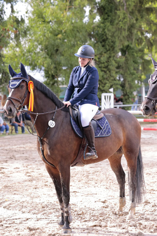 So konnte sie auf dem Turnier in Biebesheim mit Ihrem Pferd Carino Gigolo das E-Springen mit der Traumnote 8,0 für sich entscheiden. Zudem belegte sie mit ihrem zweiten Pferd, Storyman den 3. Platz in einem A- Springen.