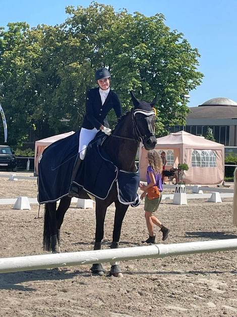 Auch der Umstieg auf das Großpferd gelingt Emmma Hildebrand mühelos. So konnte sie mit Ihrem Neuerwerb Little Lord in einer M*-Dressur direkt den 4. Platz belegen. Herzlichen Glückwunsch an unsere Emma!