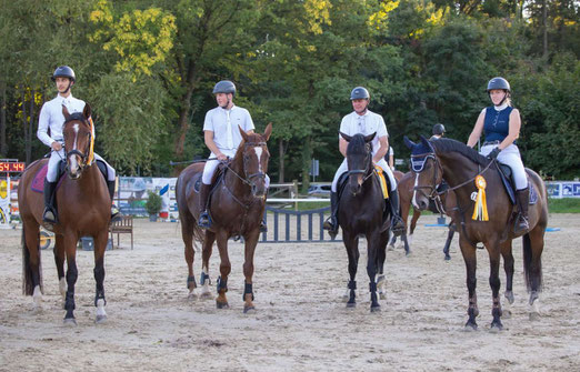 Am darauffolgenden Tag erreichte Mona Reichel mit Mephisto in der Qualifikation zum Jugendförderpreis mit einer Wertnote von 7,7 einen tollen 2. Platz und Fabian Brillinger in einem Zeitspringen der Klasse A mit Dongi einen tollen 4. Platz. Wir sind sehr stolz auf euch!