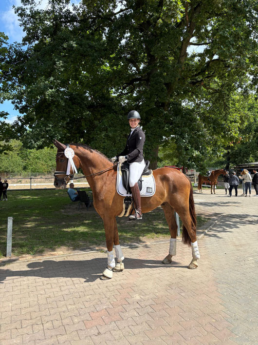 Die Erfolgssträhne unserer Dressurmädchen reißt nicht ab! Am Wochenende vom 22. und 23. August konnte unser noch sehr junges Mitglied Lucy Schuler eine sehr stark besetzte L-Dressur in Mannheim Friedrichsfeld für sich entscheiden. Mit einer Wertnote von 7,4 stand sie stolz an der Spitze der Platzieren. Tolle Leistung liebe Lucy!